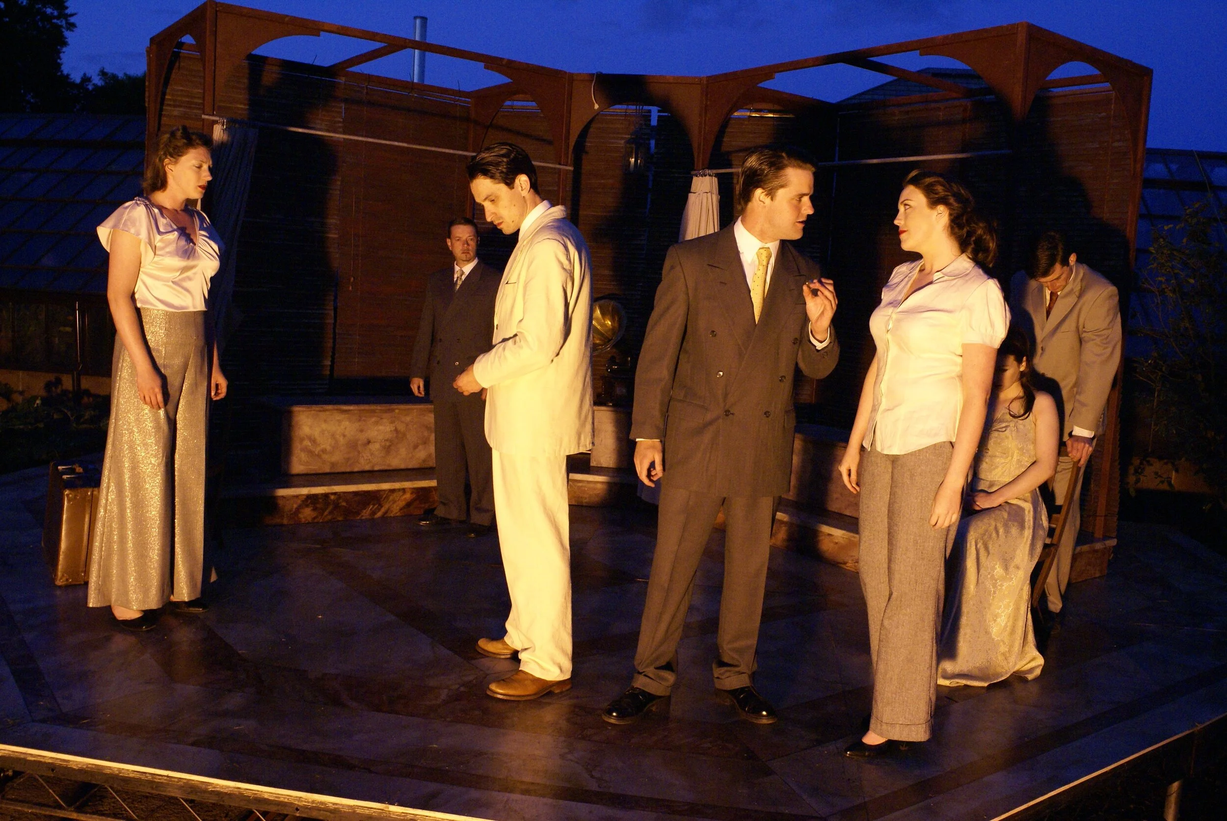 The season opened with Artistic Director, Gordon Barr’s production of “The Merchant of Venice”. The production, led by Sarah Chalcroft as Portia & John P Arnold as Shylock, fully embraced the play’s contradictions to create a complex rendering of the story. Set in 1930’s Europe, the production acknowledged the simmering racial tension and anti-semitic feeling bubbling under the surface that would, historically, produce such terrifying results. In his Director’s Notes, Gordon Barr wrote that “this play throws up more questions than it answers, it has the potential to make us confront our own prejudices just as its characters must do but…at its heart is a plea for understanding and a warning of what happens when, for whatever reason, we lose a sense of our own humanity.” Portia had the last line in this version – “It is almost morning” – and as the strains of “The Clouds Will Soon Roll By” floated out ironically from a gramophone and Jessica, Shylock’s daughter, stood clutching the yarmulke ripped from her father’s head in the trial scene, the audience were left wondering just what that coming morning would bring with it!